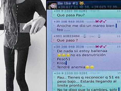 «Hoy no he comido nada. Sólo un vaso de zumo y son 20 kcal», escribe una chica en su móvil. El destinatario: el grupo «Dulce adicción», donde más de 50 adolescentes comparten experiencias