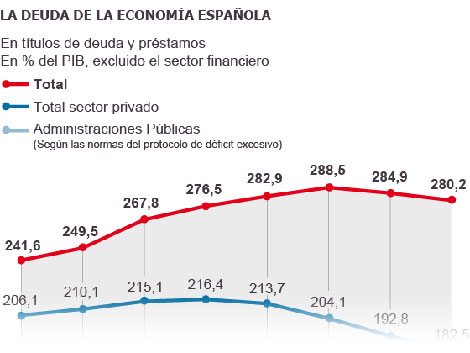 La peor evolución del sector público lleva a España a estar más endeudada que siete años atrás.